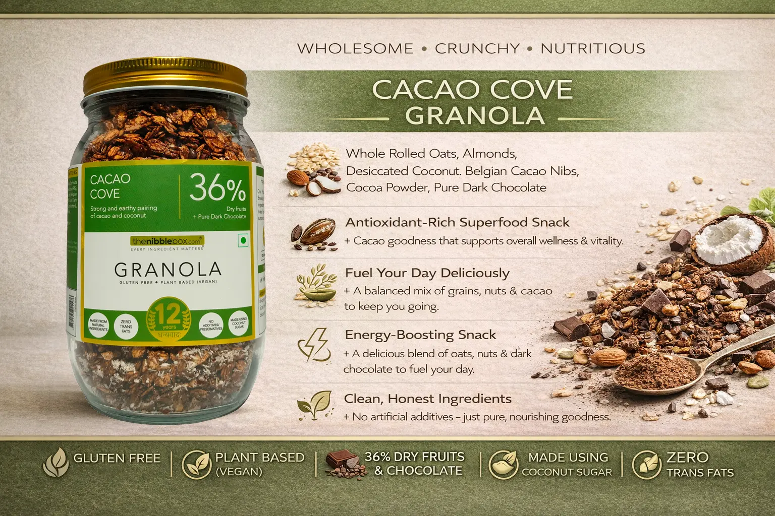 Cacao Cove Granola – 36% Dry Fruits