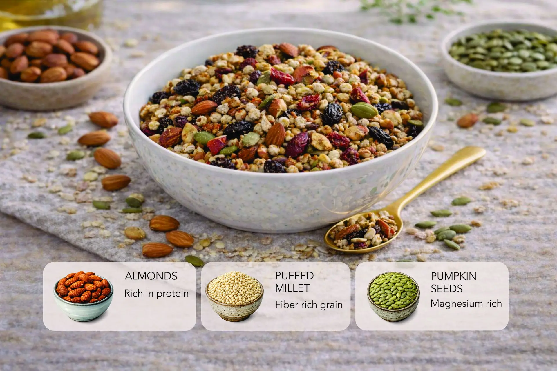 Fuel your day with crunchy Millet goodness — because every ingredient matters.