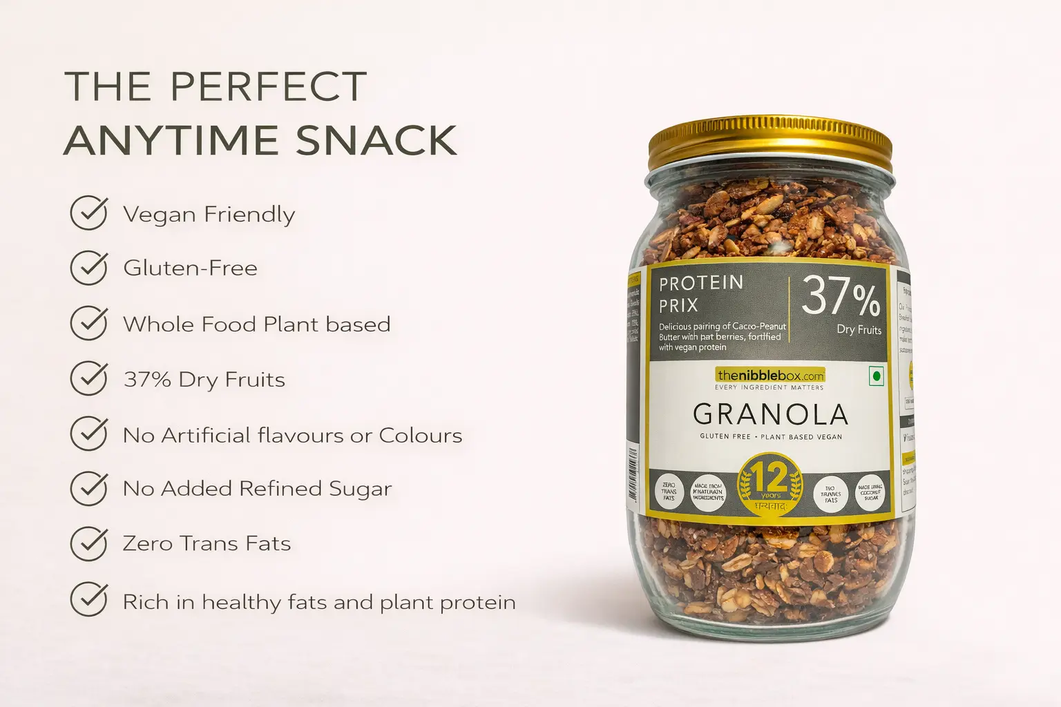 ✔ 37% Dry Fruits – Packed with nuts, fruits, and seeds for maximum nutrition