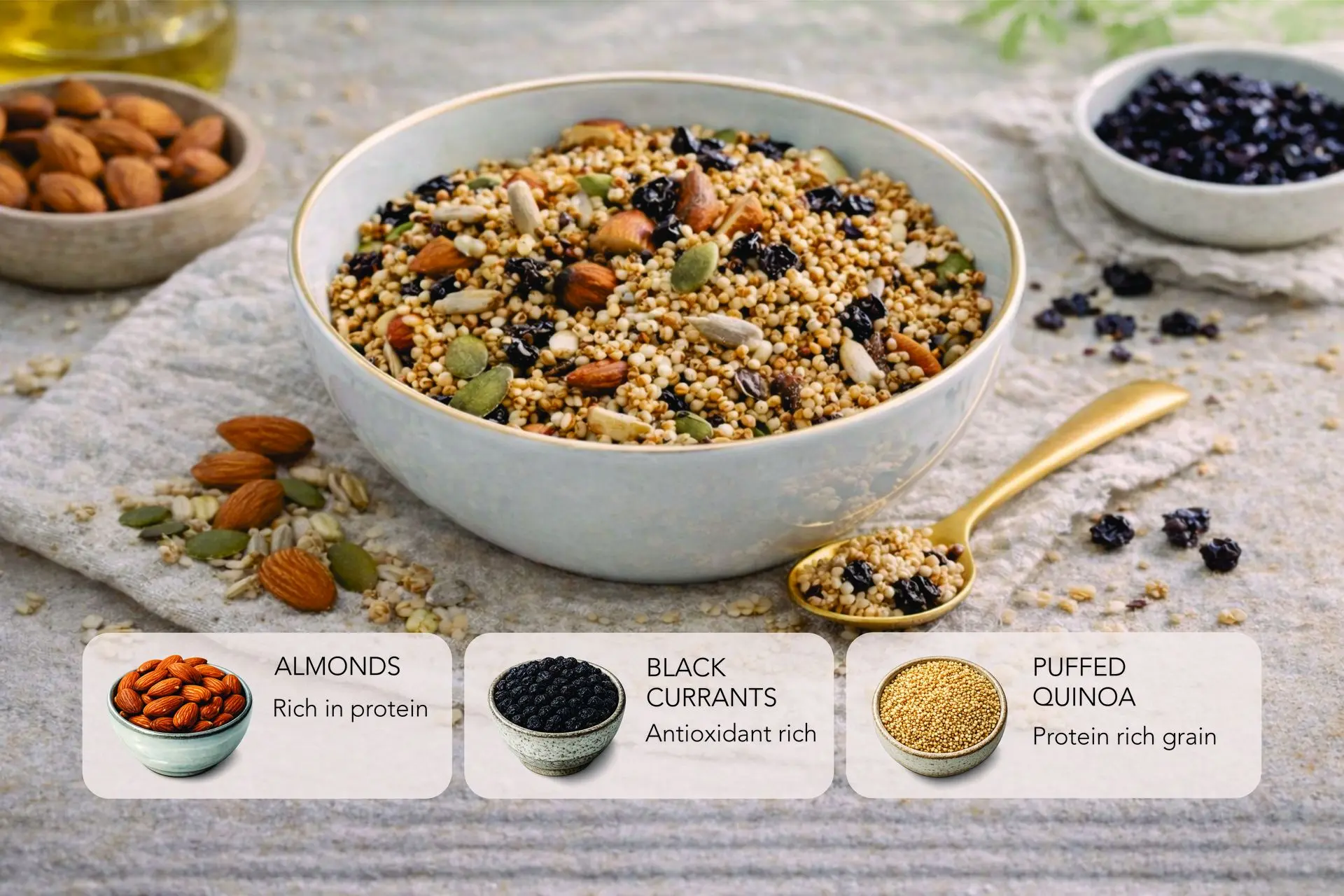Fuel your day with crunchy Quinoa goodness — because every ingredient matters.
